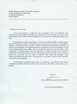 The following is some information about Azita's scholastic and professional achievements. First is her resume, and second is an essay that she wrote when she was applying for residency at different hospitals. Finally, there are letters of recommendation, which were written on Azita's behalf by her professors and colleagues.